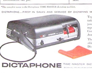 There were two machines that I rather liked in my father’s offices. One was the Dictaphone which was on my father’s desk. It recorded letters that my father spoke into it. It had some kind of flat paper-like material that went around in a circle and recorded his voice. It was beauty of a machine and my father would have used it a lot more if he wasn’t always in such a rush. So, most of the time, rather using this state of the art “time-saver”, my father dictated to poor Millie Clock, who was my father’s secretary, because usually my father could not spare the time to separately record his letter.