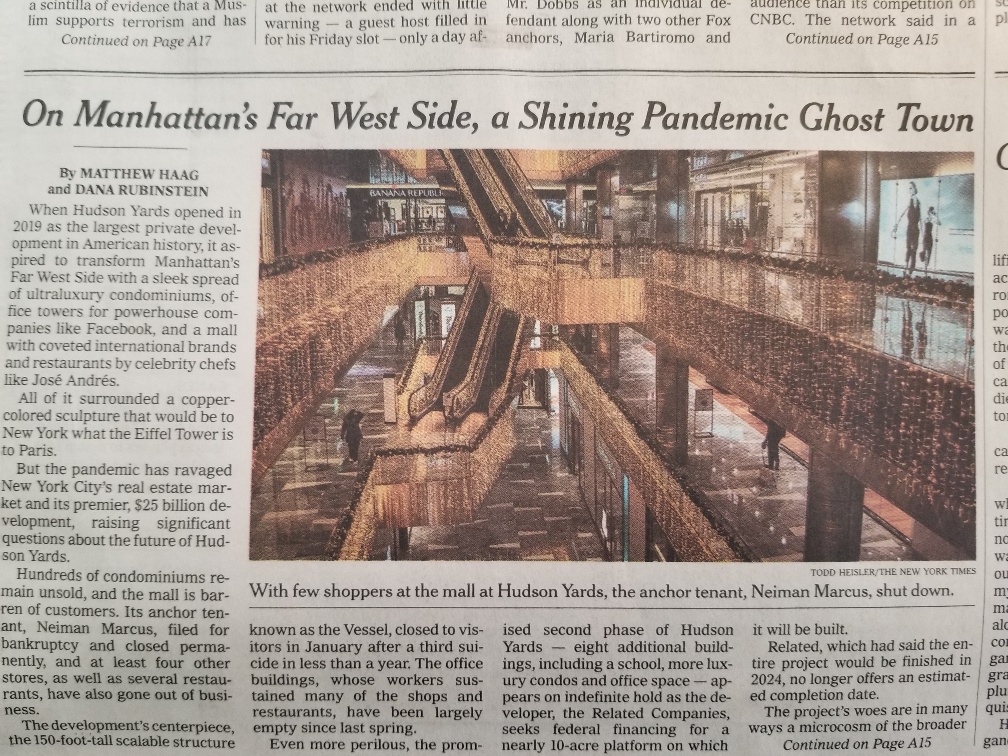 This is the mall I had Shashimi and green tea with my brother and my techie cousin. This New York Times article was published on February 6, 2021. I would note that while this is a glittering example of recent effects of the Coronavirus, many other parts of the city are also suffering.